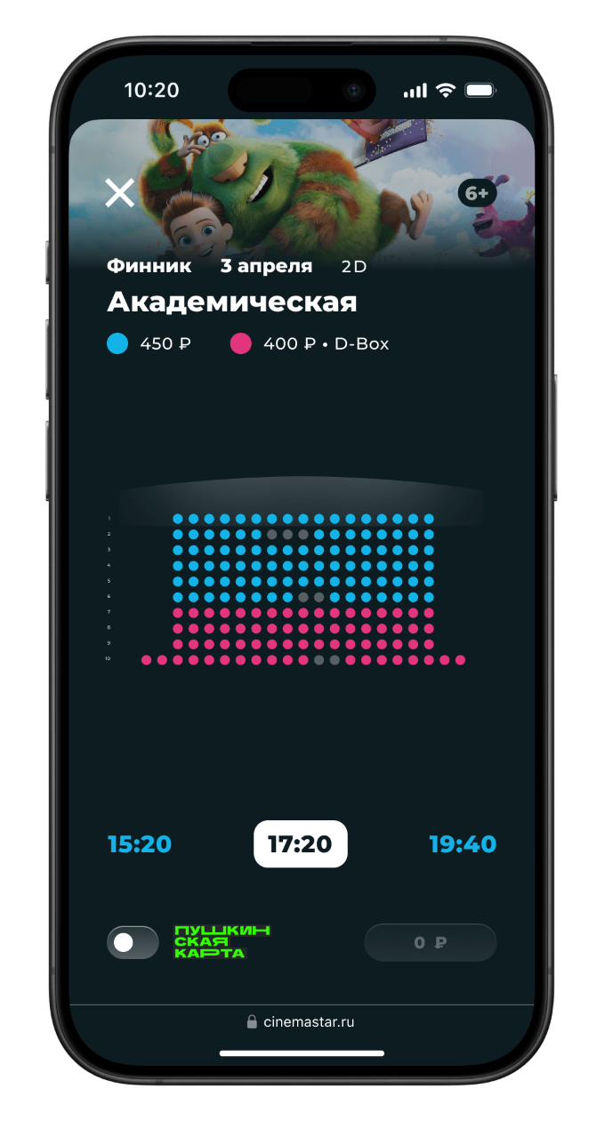 В зале нет места? Другой сеанс выбирается прямо в окне покупки.